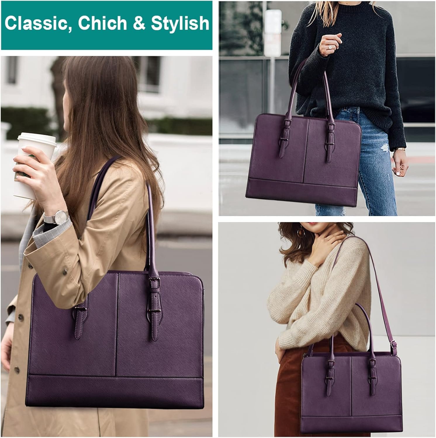 - 👜Gorgeous Womens Laptop Bag – Made of premium PU leather material, durable and fashion. Sturdy design, fluid lines that convey a classic chic fashion look that is personalized and elegant and never out of style, will bring modernity and freshness to any outfit.