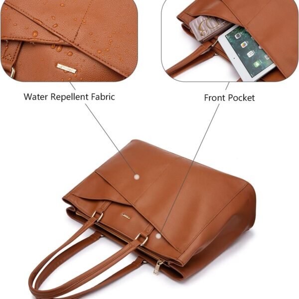 Laptop Bag for Women 15.6 Inch Work Tote Bags Leather Computer Bag with Clutch Purse Professional Office Briefcase Waterproof Handbag Shoulder Bag for Business Travel College, Brown