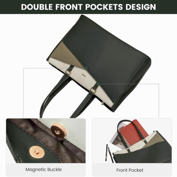 Laptop Bag for Women, 15.6 inch Laptop Tote Work Teacher Bags Computer Shoulder Bag,Dark Green/Olive green/Off white